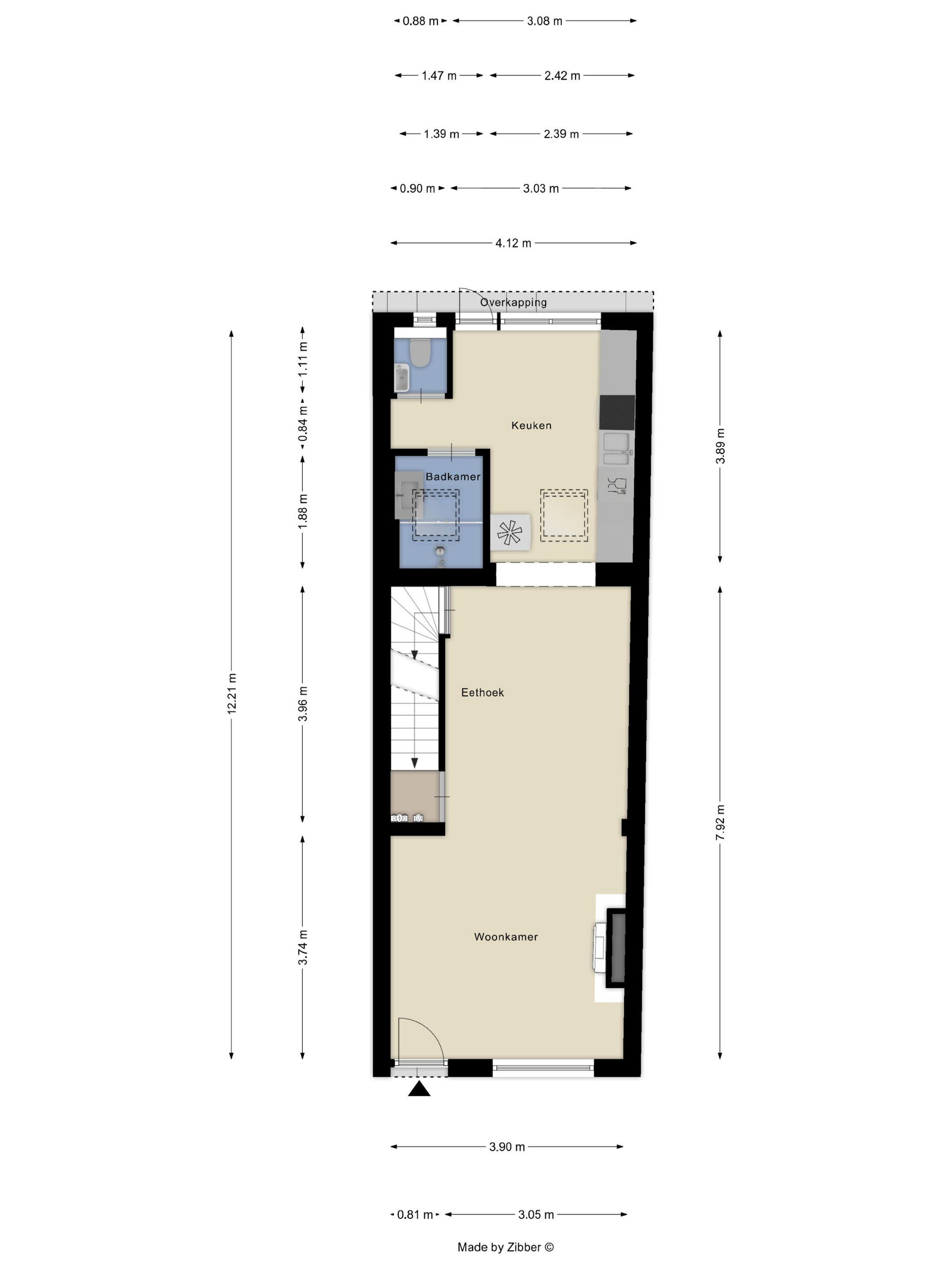 4.0 m x 3.1 m = 12.4 m²